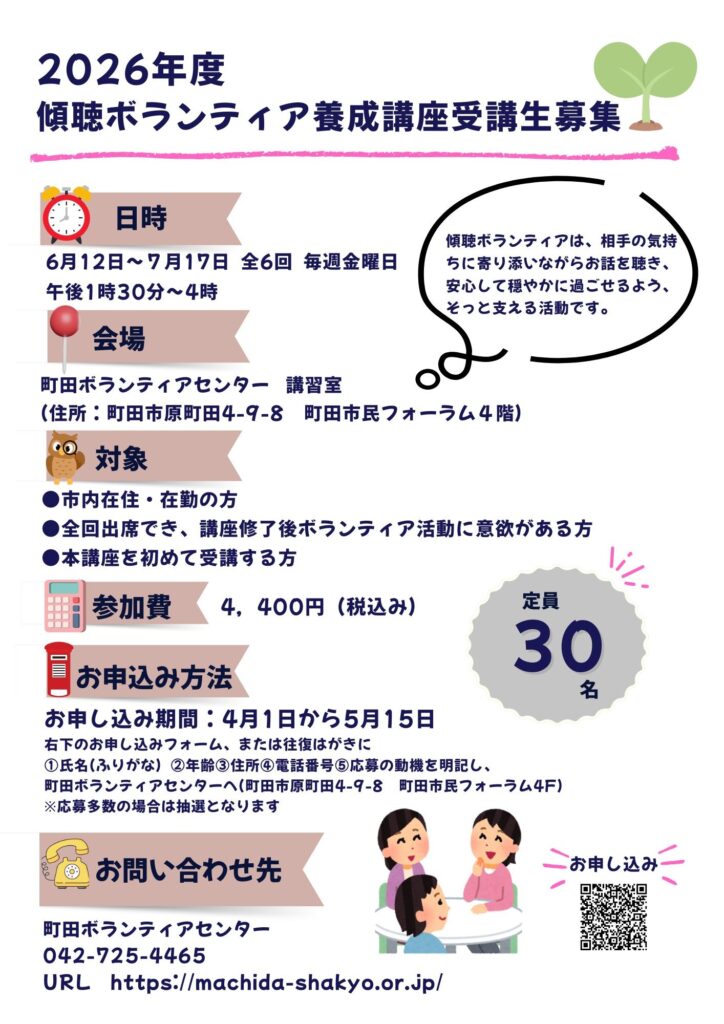 | 申込先 | 〒194-0013 町田市原町田4-9-8 町田市民フォーラム4階 町田ボランティアセンター宛 |