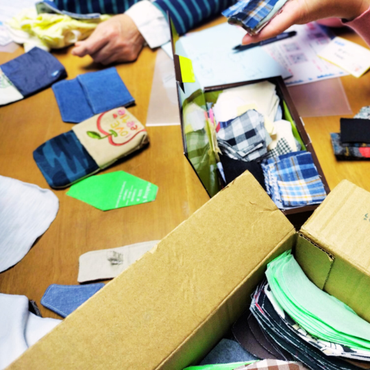 シール貼りやボタン付け、生地選びなどをわいわい楽しみながら進めました。