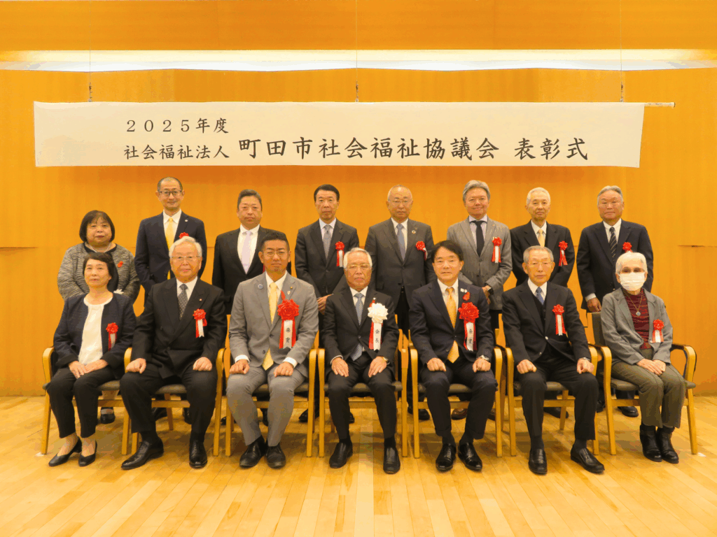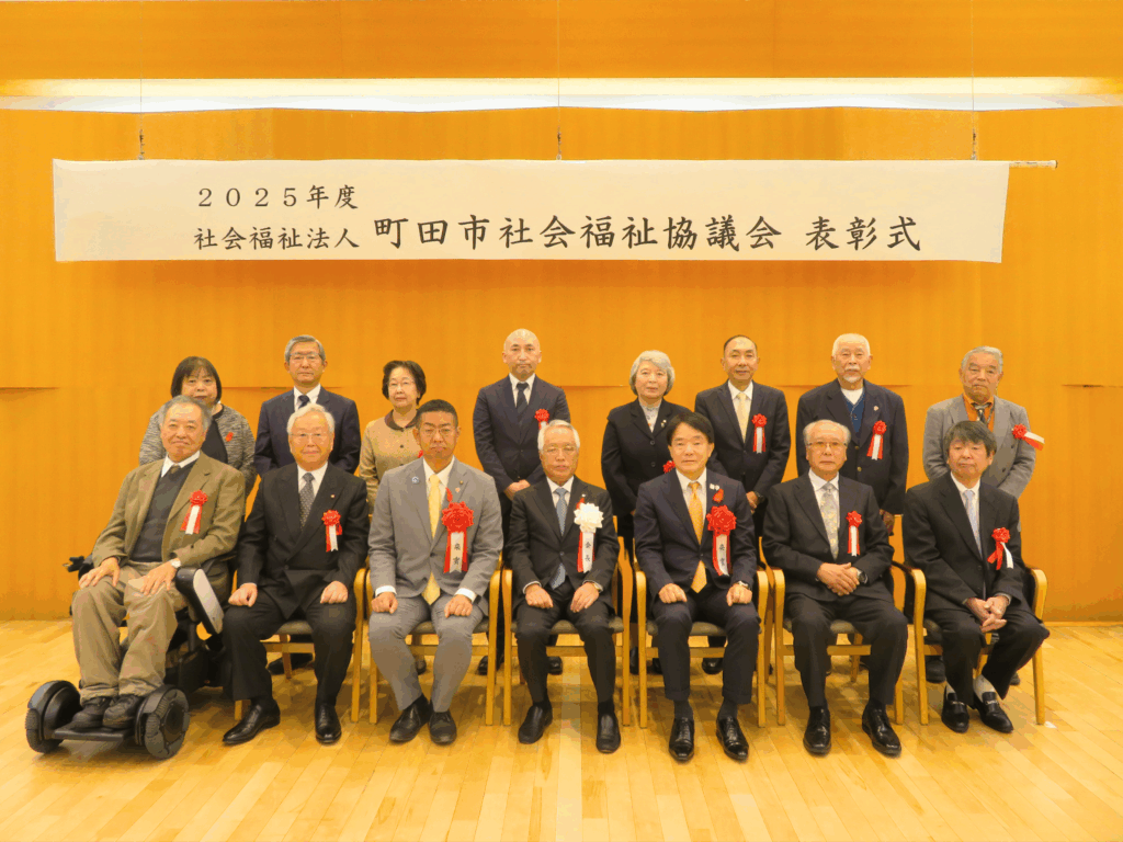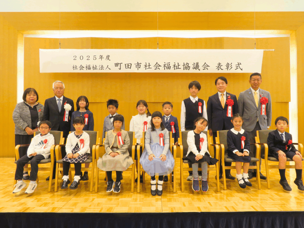 11月15日(土)町田市文化交流センターで、榎本悦次副市長、木目田英男市議会議長ご出席のもと表彰式を執り行いました。本会の事業推進や地域における社会福祉の推進に寄与された方々及び、町田市内学童保育クラブ絵画作品展受賞者に、本会の深澤勝会長から表彰状・感謝状が贈られました。