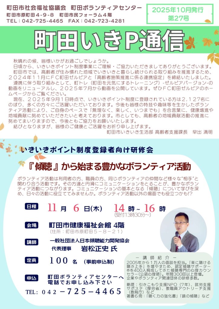 研修は予約制です。ボランティアセンター(☎042-725-4465)までご連絡ください。